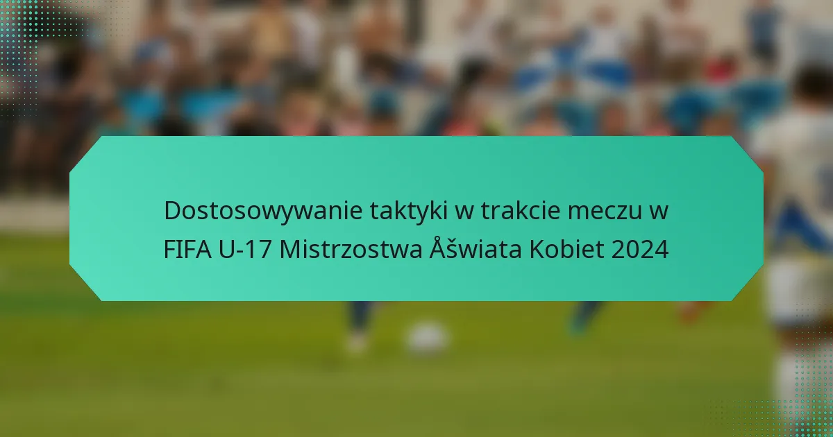 Kluczowe adaptacje taktyczne w meczach Mistrzostw Świata FIFA U-17 Kobiet 2024 obejmują strategiczne zmiany w formacjach, zmianach zawodników oraz taktycznych przesunięciach w trakcie gry. Trenerzy i zespoły dynamicznie reagują na przebieg meczu, dążąc do optymalizacji wyników w oparciu o strategie przeciwnika i aktualne warunki meczowe.