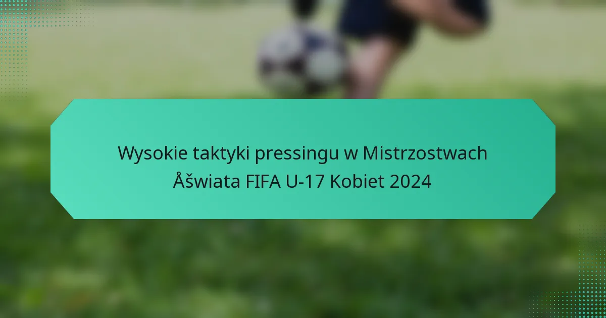 Jak stosowane są taktyki wysokiego pressingu w Mistrzostwach Świata FIFA U-17 Kobiet 2024?