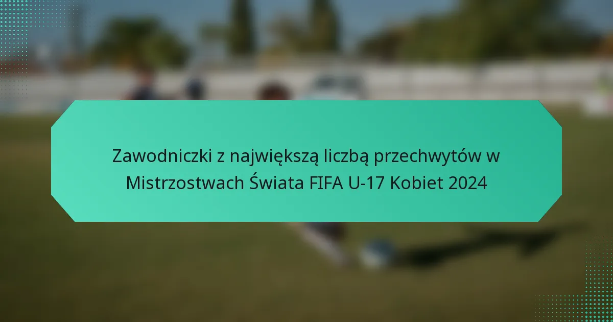 Mistrzostwa Świata FIFA U-17 Kobiet 2024 zaprezentowały kilka zawodniczek, które wyróżniają się w rolach defensywnych, szczególnie w zakresie przechwytów. Te zawodniczki wykazały się zdolnością do zakłócania ataków przeciwnika, znacząco przyczyniając się do strategii defensywnych swoich drużyn.